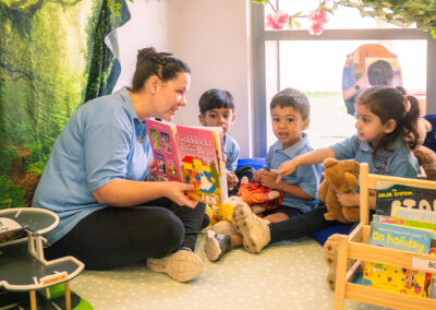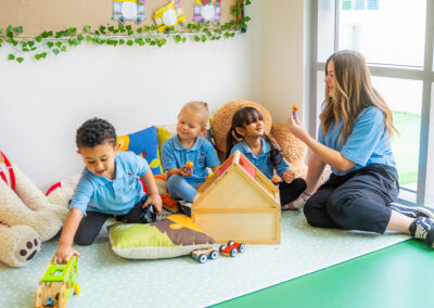 Our bright and well-resourced classrooms are equipped with child-led resources designed to encourage exploration and learning through play. We designed our extensive outdoor areas to support all children’s interests. One of the highlights of this nursery is the sensory garden which supports messy play, gardening and nature activities. We also have a swing area, sandpit and bike track area as well as lots of other outdoor playground space. This supports children to develop gross and fine motor skills, and enjoy outdoor play as we believe time outdoors and breathing fresh air are great for children’s overall health and development.