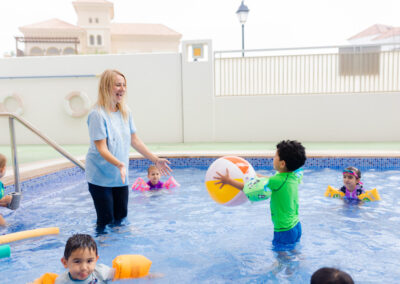 At EBN we are aware of the importance of fresh outdoor air, being exposed to natural light and physical activity, for this reason we have 2 large playgrounds and 6 individual courtyards easily accessed throughout the day. Our Sensory garden is a popular favourite, the children are provided with the opportunity to dig into the joys of gardening and plant care while engaging all their senses and interacting and exploring with their friends. The children will love our swimming sessions in our chilled and heated swimming pool which allows them to practice their co-ordination and develop water confidence.